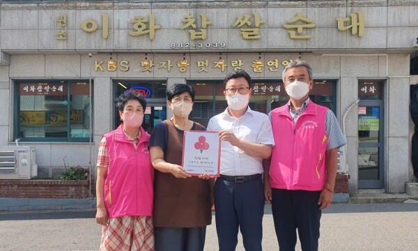 이번 행사에는 착한가게 1호점 이화찹쌀순대 대표, 도원동장, 관내 저소득계층을 위해 지역자원을 적극 발굴한 도원동 지역사회보장협의체 위원장이 참석했다.