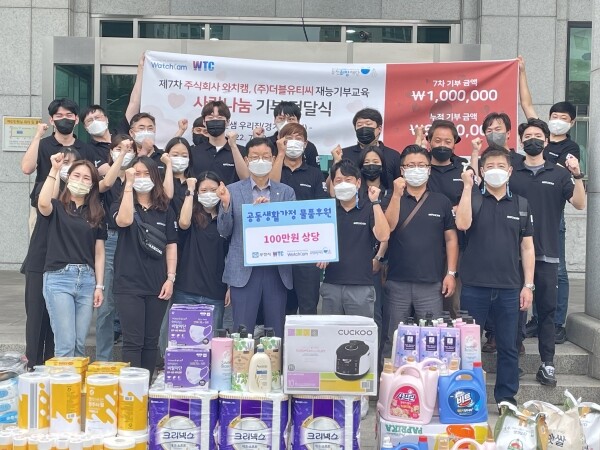 ㈜와치캠 최지훈 대표는 “공동생활가정 청소년들이 조금이나마 즐겁고 행복하게 생활하였으면 하는 마음에 물품을 기탁하게 됐다”며 “앞으로도 지금처럼 지속적인 사회공헌활동을 통해 지역사회와 함께 성장하는 선한 기업으로 기억될 수 있도록 노력하겠다”고 말했다.