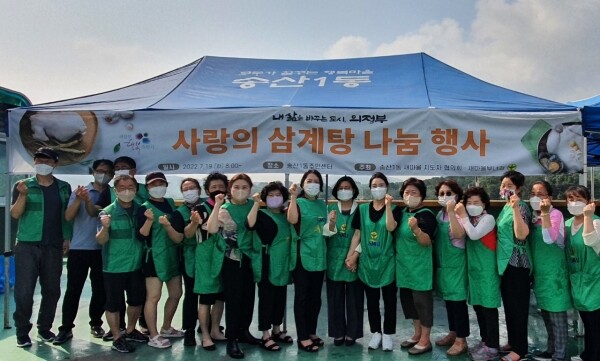 임명녀 새마을부녀회장은 “더운 날씨에도 나눔 봉사에 동참해 주신 모든분들께 감사드리고 어려운 이웃들이 삼계탕을 드시고 건강하게 여름을 나시고 코로나19로 힘든 마음에 위로가 되었으면 좋겠다”고 말했다.