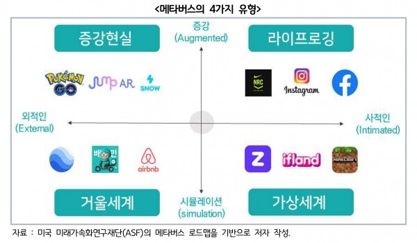 이 같은 의견에 대해 연구원은 메타버스 활성화 방안으로 산업 생태계 및 혁신 주체들을 플랫폼 관점에서 분석하고 각각에 대한 차별화된 정책 지원 콘텐츠 제작자들의 기술적·환경적 제약을 극복할 수 있는 제작센터와 같은 시설 지원 메타버스 공간 내에서 상호 안심하고 거래할 수 있는 경제질서에 대한 대책 수립 등을 제시했다.