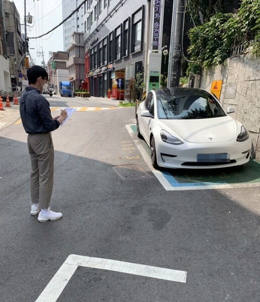 전기차 충전방해행위 신고는 국민신문고 모바일 앱 또는 120다산콜센터, 맑은환경과로 하면 된다.