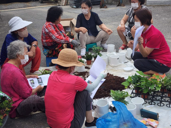 원예 테라피 행사에 참여한 어르신은 “오랜만에 주민들이 옹기종기 모일 수 있는 자리가 마련되어 너무 즐겁고 심은 식물에서 예쁜 꽃을 피울 수 있도록 잘 가꿔보겠다”며 감사의 마음을 전했다.
