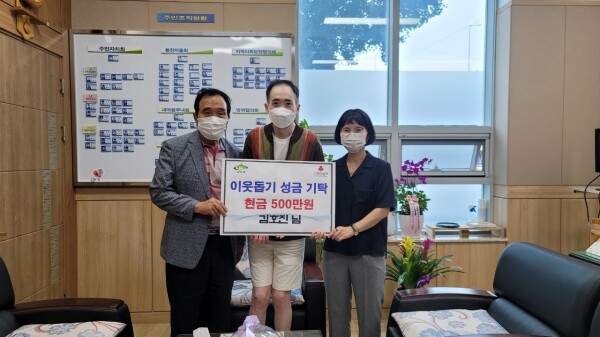 김호진 씨는 일신동에 거주하는 청년 자영업자로 매달 10만원씩 5년 간 모은 돈으로 지역 내 어려운 이웃들을 위한 사업에 사용해 달라며 일신동 행정복지센터에 성금을 기부했다김호진 씨는 “지역 내 어려움을 겪고 있는 이웃이 많아 성금을 기부하게 됐다”며 “더 큰 도움을 주지 못해 아쉽지만 앞으로도 어려운 이웃들을 위한 나눔을 계속하겠다”고 말했다.