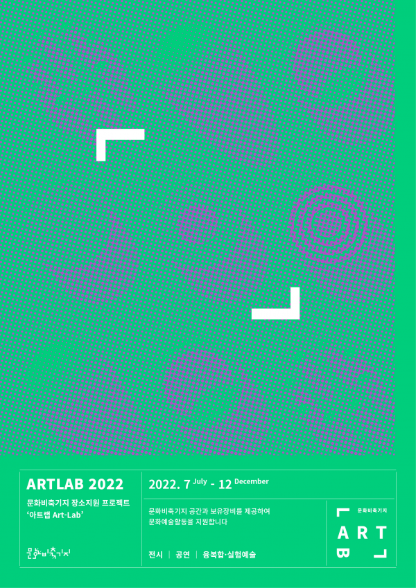 ‘문화비축기지 아트랩-Art Lab’은 ‘전시’와 ‘공연’, ‘융복합·실험예술’의 3가지 분야로 창작자들에게 문화비축기지 공간과 보유 장비를 제공해 문화예술 활동을 지원하는 사업이다.