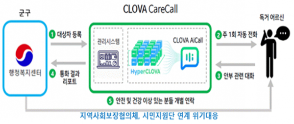 인공지능 케어콜이 주1회 중장년 이상 1인 가구에게 정해진 시간에 전화를 걸고 96%이상의 높은 정확도로 음성을 인식해 식사, 수면, 건강 등 다방면으로 말을 걸어 상대방의 상태를 파악한다.
