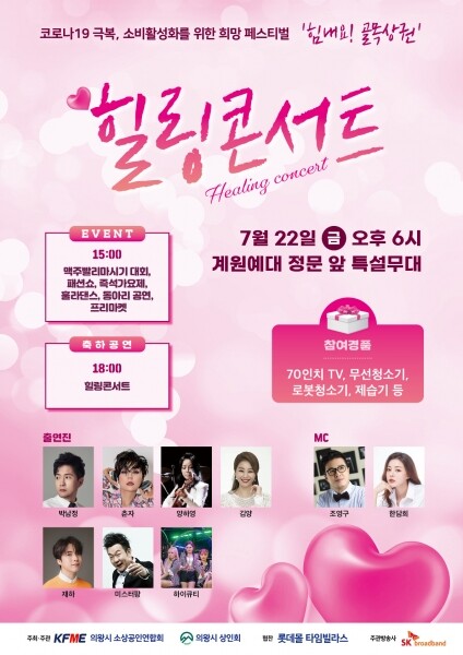 의왕시 소상공인연합회와 의왕시 상인회가 주최하고 SK브로드밴드 안양방송이 주관방송사로 참여하는 이번 축제는 2년여 동안 코로나로 지친 소상공인과 시민들을 위한 프로그램으로 구성됐다.