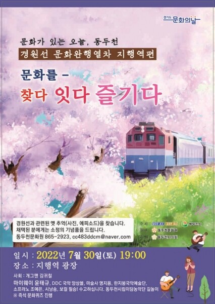 동두천 시민들이 가장 많이 이용하는 지행역 광장에서 펼쳐지는 만큼 경원선과 관련된 추억을 모집해 시민들에게 전시의 형태로 선보일 예정이다.