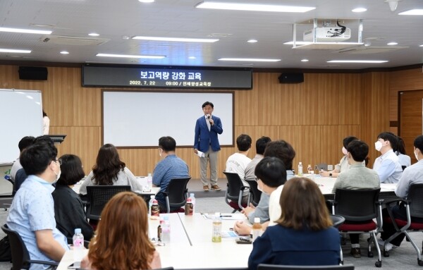 이번 교육은 민선 8기의 공약 및 각종 정책 추진에 있어서 실무 담당자의 보고서 작성에 부담을 줄이고 논리적이고 구체적인 계획 수립 및 실행을 통한 조직의 성과 창출을 위해 마련됐다.