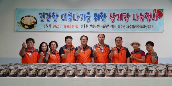 이날 지역사회보장협의체 위원들은 집에서 간편하게 조리할 수 있는 삼계탕 밀키트를 인천누수탐지로부터 후원받아 관내 저소득 아동·청소년 가구 100여명에게 전달하면서 안부를 전했다.