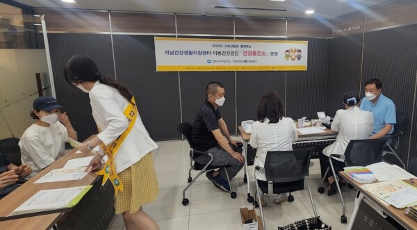 건강충전소는 서로신협 조합원 8천 명을 대상으로 혈압, 혈당, 콜레스테롤 등 기초 검사와 1:1 맞춤 건강상담 등을 하며 아울러 석남건강생활지원센터 사업 홍보를 위한 프로그램이다.