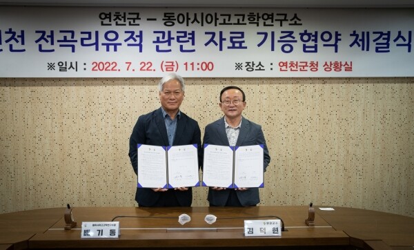 이날 배기동 동아시아고고학연구소장은 연천의 문화유산 발전을 위해 고고인류학 전문서적, 사진, 구석기축제 자료, 석기 등 3만점을 군에 기증하기로 했다.