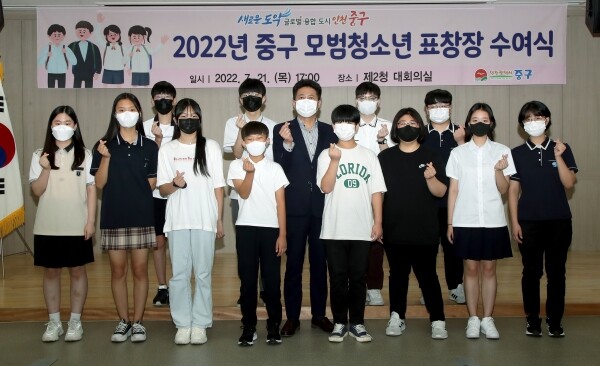 중구는 평소 선행과 봉사를 실천하고 폭넓은 참여활동으로 민주시민의 역량을 갖춘 청소년을 발굴하고 격려하고자 지역 내 각급학교 및 청소년상담복지센터, 학교밖청소년지원센터로부터 총 30명의 청소년을 추천받아 모범청소년 표창 수상자로 선정했다.