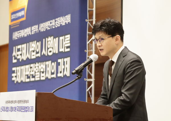 이번 학술대회에는 한동훈 법무부장관, 노태악 대법관, 홍기태 사법정책연구원장과 법조계·학계 전문가 80여명이 참석한 가운데 “신국제사법의 시행에 따른 국제재판관할법제의 과제”를 주제로 발표와 토론이 진행됐다.