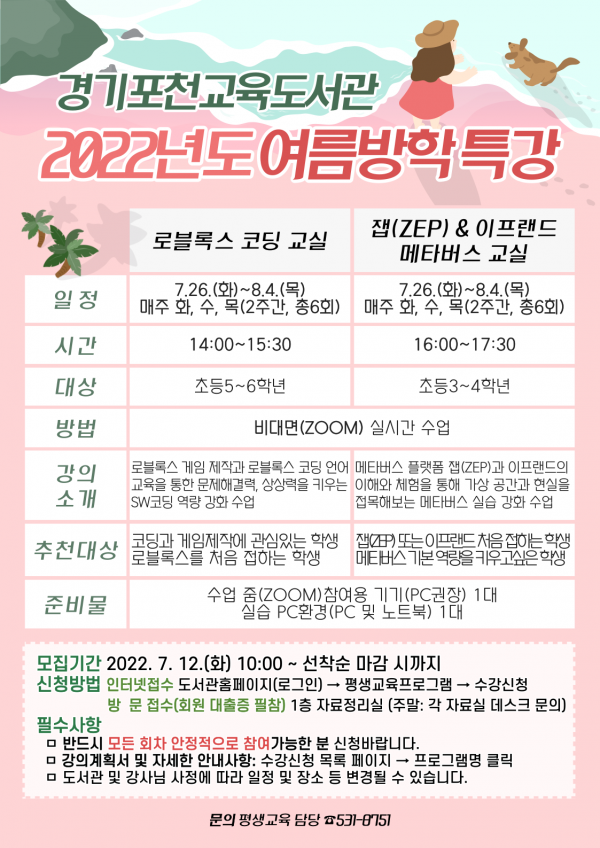 이 프로그램은 여름방학을 맞이한 학생들에게 다양하고 폭넓은 학습 기회 제공하고자 교육도서관에서 마련했다.