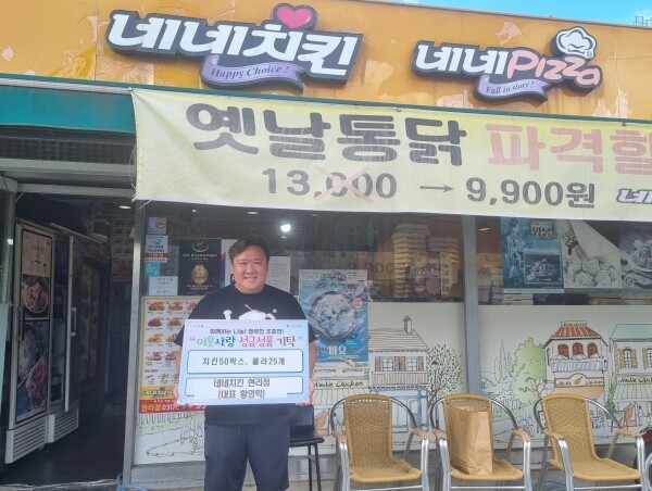 2019년부터 어려운 이웃을 위한 따뜻한 나눔을 실천해온 네네치킨 현리점은 지속적인 장마와 무더위로 지친 취약계층을 위로하고자 하는 마음에 이번 기부를 하게 됐다고 밝혔다.