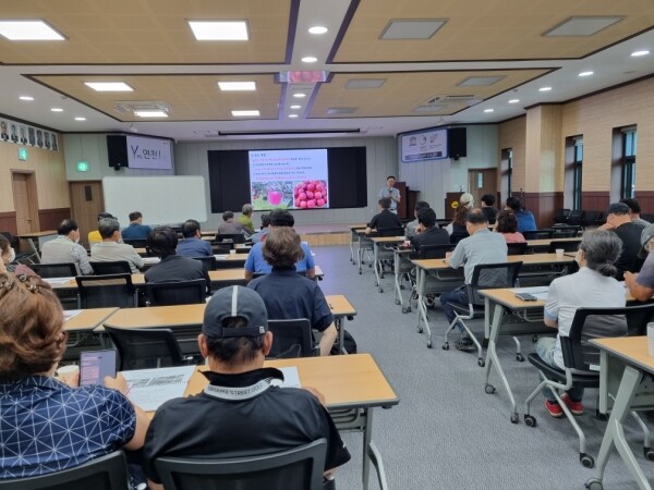 센터는 하계 수형관리, 장마기 배수, 조생종 착색관리, 병해충 예찰 및 방제 요령 등을 교육했다.