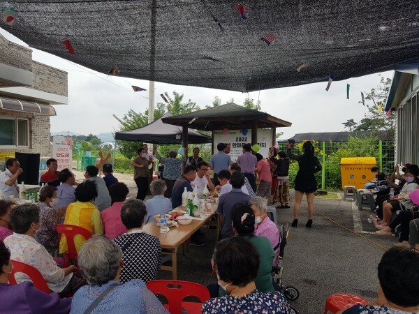 더운 날씨에도 불구하고 이날 경로잔치에 많은 마을주민들이 참석했으며 주민들은 중리동 설봉소리새 동아리 국악공연과 전문가수의 트로트 공연을 관람하고 마을주민들이 참여하는 노래자랑 등 레크레이션 활동을 하며 즐거운 시간을 가졌다.
