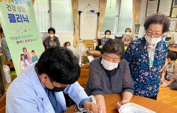 이날 행사에서는 경로당에 방문하시는 어르신들 30명을 대상으로 건강 상태 확인을 위해 혈압·혈당 측정과 상담을 진행하고 향후 병원 진료 계획을 짜고 자가 건강관리 방법 등을 교육하는 시간을 가졌다.