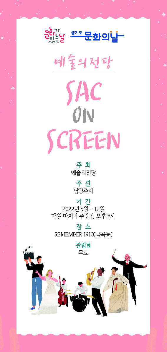 SAC ON SCREEN은 예술의전당이 선별한 공연 무대와 전시장을 영상에 담아 전국에 무료로 배급하는 영상화 사업으로 문화 예술 기반이 열악한 지방 거주 주민, 문화 소외 계층에 고급문화를 향유할 수 있는 기회를 제공하고자 지난 2013년 시작됐다.