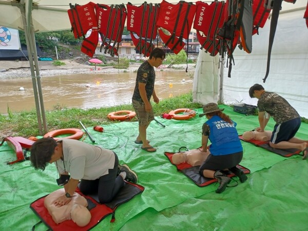이번 교육은 화도읍 재난구조협회 이희문 회장이 강사로 참여했으며 물놀이 안전관리 수칙, 구조장비 사용방법, 심폐소생술 실습 등 현장 대응 능력 향상을 위한 교육으로 구성됐다.