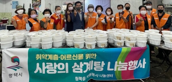 이날 봉사활동에는 청북읍 자원봉사나눔센터 운영위원 15명이 참여해 삼계탕 120그릇을 정성껏 만들어 청북 주·야간보호센터 어르신들과 독거어르신 등 취약계층에게 전달했다.