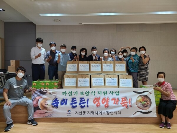 이날 행사는 지역사회보장협의체 위원들의 후원금으로 마련됐으며 보양식으로는 갈비탕, 추어탕, 도가니탕 등 다양한 종류의 밀키트와 제철과일로 구성했다.