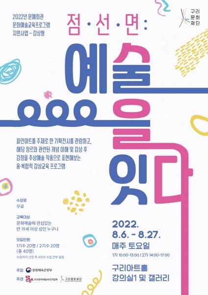본 사업은 구리아트홀 전시실에서 지난 7월 15일부터 운영 중인 기획전시 ‘점선면의 대화’와 연계해 진행된다.