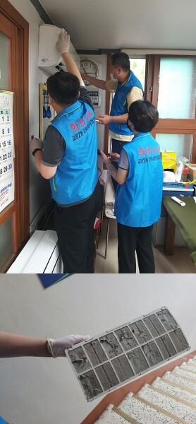 ▲ 구리시 교문2동 지역사회보장협의체, 경로당 에어컨 점검·청소 봉사 실시