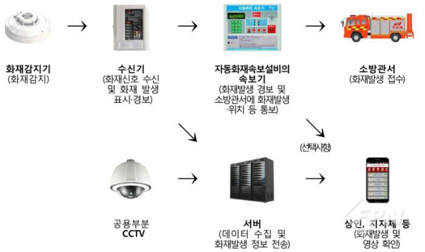 화재발생시 연기, 열, 불꽃 등 발화요인을 감지해 관할 소방서로 즉시 통보되는 시스템으로 전통시장의 화재피해를 최소화할 수 있는 수단으로 평가받고 있으며 이번에 화재가 발생한 점포는 ‘17년도에 중기부 지원을 받아 화재알림시설을 설치했다.