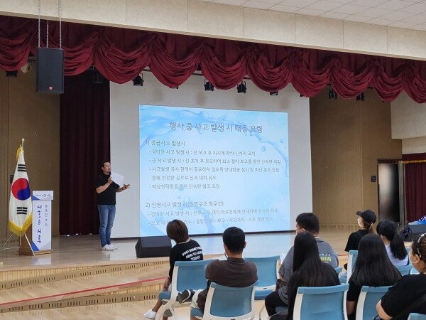 이번 안전교육은 축제 개요를 시작으로 안전사고 및 미아 방지, 위생 철저 등 축제 위험요소에 대한 대비 내용을 담았다.