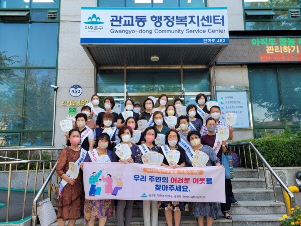 명예사회복지공무원으로 활동하고 있는 20여명 통장자율회 회원들이 참여했으며 ‘고립된 홀로 사는 이웃을 알려주세요’, ‘서로돌봄, 관교愛 발견’ 문구가 적힌 부채를 제작해 주민들에게 배부하며 소외된 이웃에게 관심을 갖도록 당부했다.