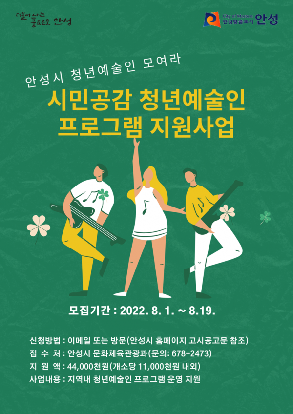 아울러 청년은 안성시에 거주하는 19세 이상 39세 이하인 자 또는 지역대학 재학생, 졸업예정자가 해당된다.