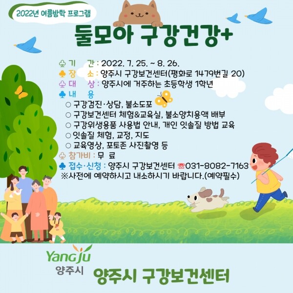 이번 프로그램은 여름방학 기간 관내 거주하는 초등생 1학년을 대상으로 건강한 구강건강 생활습관 형성과 구강건강 능력 향상을 도모하기 위해 마련했다.