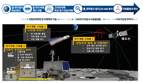 특히 ‘미래우주탐사 및 우주자원 활용 기술 연구센터’는 우주탐사와 우주자원 활용 분야에 대해 실무 중심의 연구 및 교육을 위해 인천에 소재한 인하대, 인천대, 뉴욕주립대와 극지연구소, 한국생산기술연구소, 다윈프릭션과 같은 지역의 산·학·연 자원을 포함한 총 23개 기관과 기업이 참여하고 달극지 탐사에 필요한 자율정밀천측항법 기술과 달에 매장된 수자원을 채굴하기 위한 달 탐사 로버, 채굴한 자원을 회수하기 위한 수전해 추력기 등 세계적 수준의 우주 핵심기술 연구개발을 수행할 예정이다.