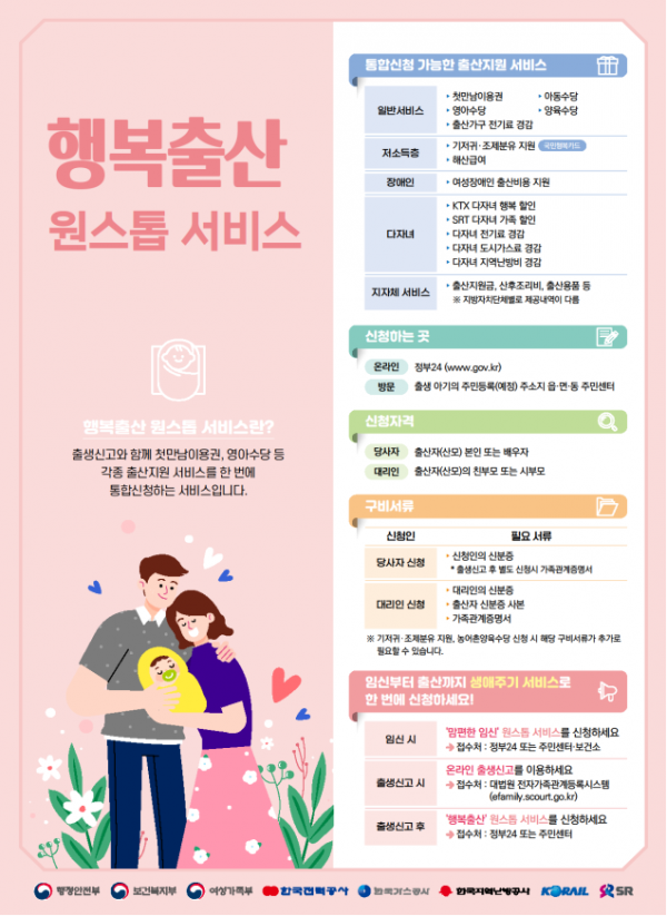 ‘맘편한 임신’, ‘행복출산’ 원스톱서비스는 임신?출산 진료비 지원 등 임신·출산 관련 수혜 서비스를 정부24 누리집 또는 보건소·주민센터 방문을 통해 한 번에 안내받고 신청할 수 있는 서비스로써 2021년에 약 30만명 이상이 이용했다.