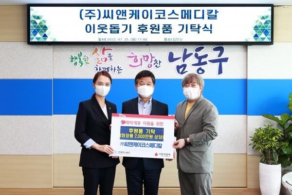 기탁식에 참석한 ㈜씨앤케이코스메디칼 관계자는 “코로나19로 많은 어려움을 겪고 있는 취약계층에게 조금이나마 보탬이 되고 싶어 후원품을 기탁했다”고 밝혔다.