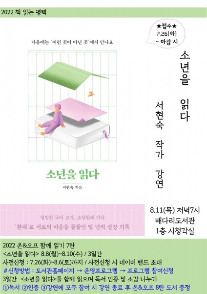 평택시가 선정한 10대 도서 중 하나인 ‘소년을 읽다’는 국어 교사인 저자가 책을 통해 소년원의 소년들과 의미 있는 인연을 맺게 된 일 년 동안의 성장 기록이다.