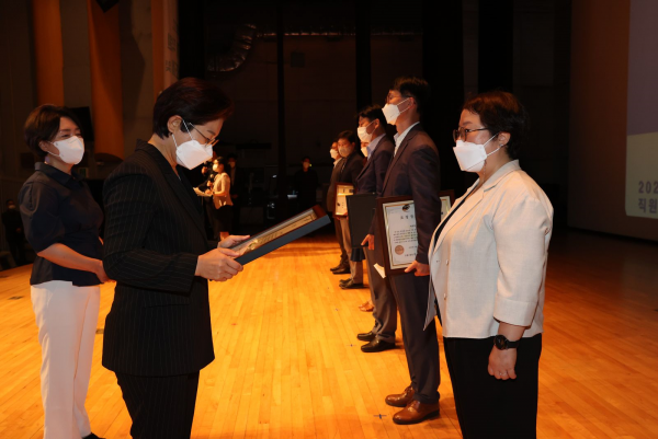 김 구청장은 2022년 상반기 우수 부서 적십자 모금 우수 동 등 2개 분야 6개 부서·동에 표창을 직접 수여하며 현장 중심 소통행정을 강조했다.