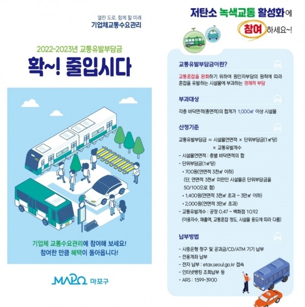 한편 지난해에는 마포구 내 89개 기업체가 교통수요관리제도에 참여해 184개 프로그램을 이행하고 총 6억 4000만원의 교통유발부담금 경감 혜택을 받았다.