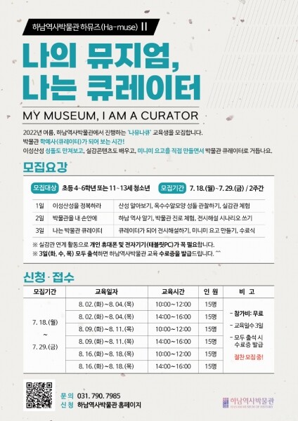 하남역사박물관은 이번 여름방학을 맞이해 세 가지 교육프로그램을 개설·운영 예정이다.