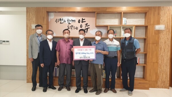 양주시쌀연구회는 회원 96명으로 현장문제 해결을 위한 경영개선과 농작업 생력화 등 기술 정보교류로 농가소득 향상을 도모하고 있으며 주기적으로 어려운 이웃을 위해 물품 전달로 나눔의 손길을 이어가고 있어 지역사회에 훈훈함을 더하고 있다.