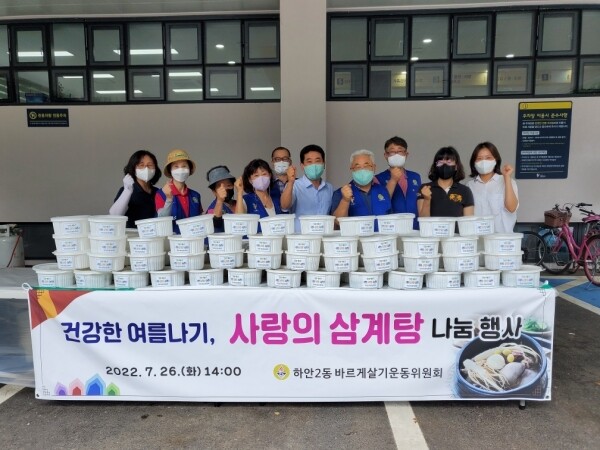박봉태 하안2동장은 “더운 날씨에도 불구하고 관내 어르신들을 위해 직접 삼계탕을 끓이고 전달해주신 바르게살기운동위원회에 깊은 감사를 드린다”며 “동에서도 어르신들이 올여름을 잘 보내실 수 있도록 최선을 다하겠다”고 전했다.