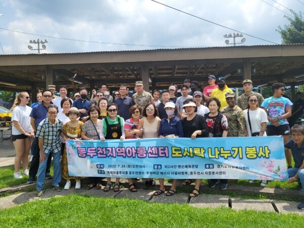 [뉴스써치] 동두천시종합자원봉사센터 소속 자원봉사단체 국제피플투피플 동두천챕터는 지난 26일 미2사단 영내 운동장에서 PTP회원 25명, 미군 KC시설사령부 장병 25명, 지역아동센터 원장 등 60여명이 참여한 가운데 경기도 지원사업 ‘도민이 전하는 자원봉사 활동’을 실시했다.