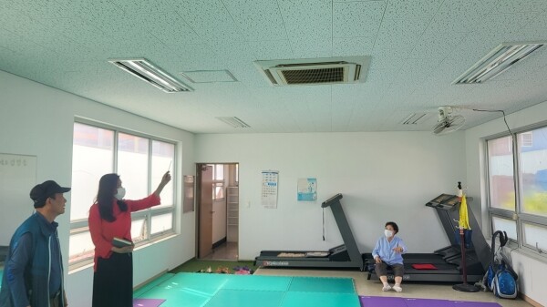 이날 점검 대상이 된 원터경로당은 고질적인 옥상 누수 및 노후화된 에어컨 등으로 인해 원활한 시설 활용에 어려움이 있었고 화장실 내부에도 일부 장비들이 고장이 나 시설 이용에 불편함을 겪고 있었다.