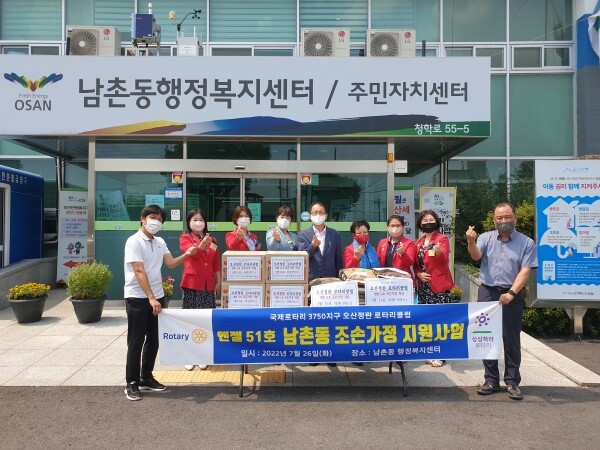 한편 오산 정란로타리클럽은 19년도부터 남촌동 행정복지센터와 자매결연 맺은 상태로 지속적인 봉사활동과 후원 등으로 지역사회 발전을 위한 나눔을 실천하고 있다.