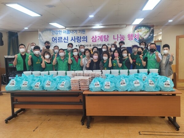 최종규 새마을협의회장과 나명남 새마을부녀회 부회장은 “어르신들이 맛있게 드시고 체력을 회복해 건강한 여름을 보내시기를 바란다”고 말했다.