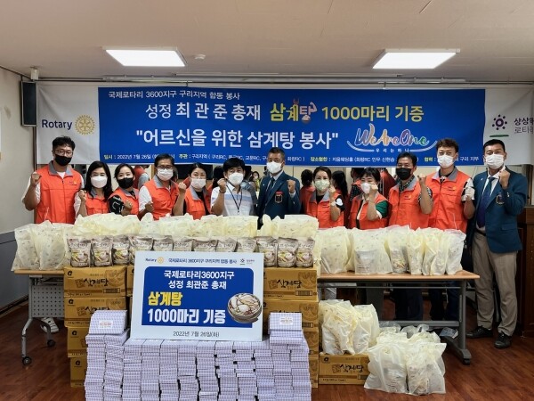 이날 ‘국제로타리 3600지구 5지역’에서 중복을 맞아 기증한 총 1,000명분의 삼계탕 중 교문1동은 200명분의 삼계탕을 후원받게 됐다.