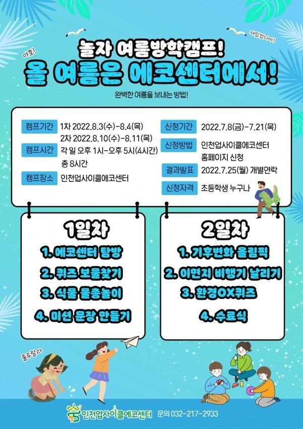 조강희 인천업사이클에코센터장은 “기후변화로 인한 무더위와 이상기온이 갈수록 기승을 부리고 있는 시기에 에코센터의 다양한 전시·체험 프로그램으로 재미와 배움, 덤으로 시원함을 즐길 수 있는 좋은 기회가 되기를 바란다”고 말했다.