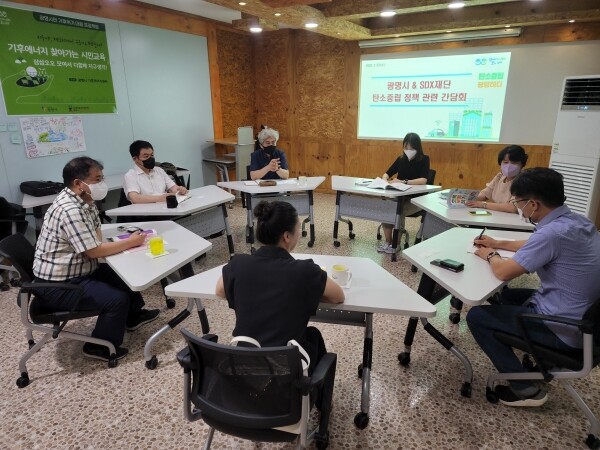 이날 간담회에는 광명시 기후에너지과장과 담당 직원, SDX재단 탄소감축위원회 사무총장 및 소속 연구원들이 참석해 각계각층의 탄소중립 이해도와 실천 방향에 대한 의견을 나눴다.