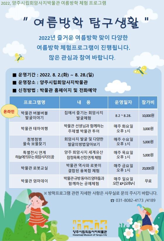 또한 온라인으로 참여자가 장소 제약 없이 즐길 수 있는 회암사지 발굴체험‘박물관 버블버블 발굴이야기’등 총 6가지 프로그램으로 구성된다.